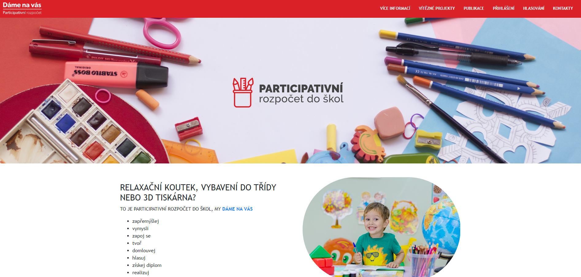 The whole content of the participatory budget for primary schools is on the website https://skoly.damenavas.cz. There you can find public information and there is also a platform for both school coordinators and pupils.